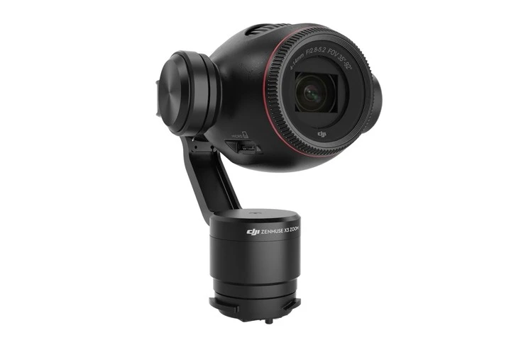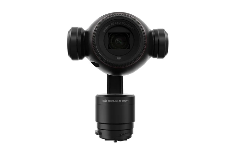 The Zenmuse X3 Zoom Gimbal and Camera features an optical zoom lens. It provides a 3.5 optical zoom and 2x digital zoom. The Type 1/2.3 CMOS sensor supports 4K video recording and 12MP still photos. As with other DJI 3-axis gimbal systems, the Zenmuse X3 Zoom can be mounted onto a DJI Osmo Handle and stream live HD video to the DJI GO app.