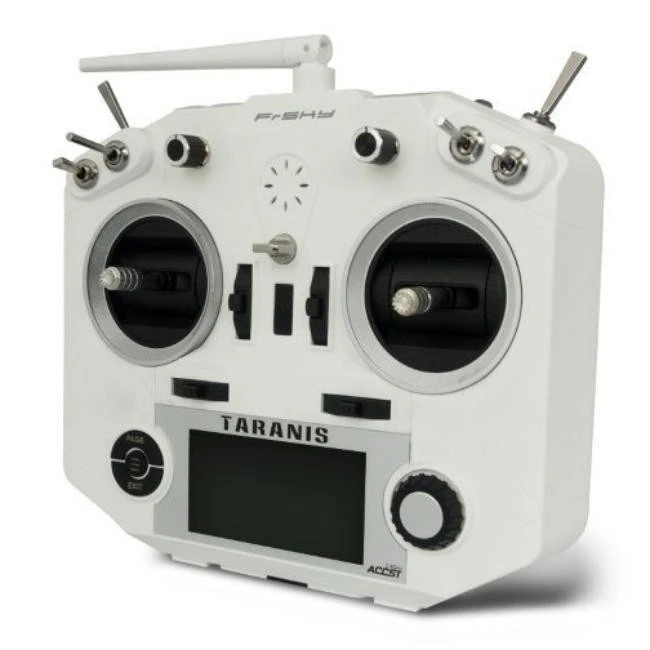 The FrSky ACCST Taranis Q X7 2.4GHz 16 channel Radio Transmitter White colour finish is the latest radio controller from FrSky which has beeen designed for quadcopter and drone racing pilots. The Frsky Taranis Q X7 2.4Ghz follows on from the very popular Frsky Taranis RC X9D Plus, and is their latest powerful radio system in the FrSky range of radio controllers. Being a lightweight feature packed reliable radio controller system, the Taranis Q X7 is aimed primarily at the drone racing pilots.