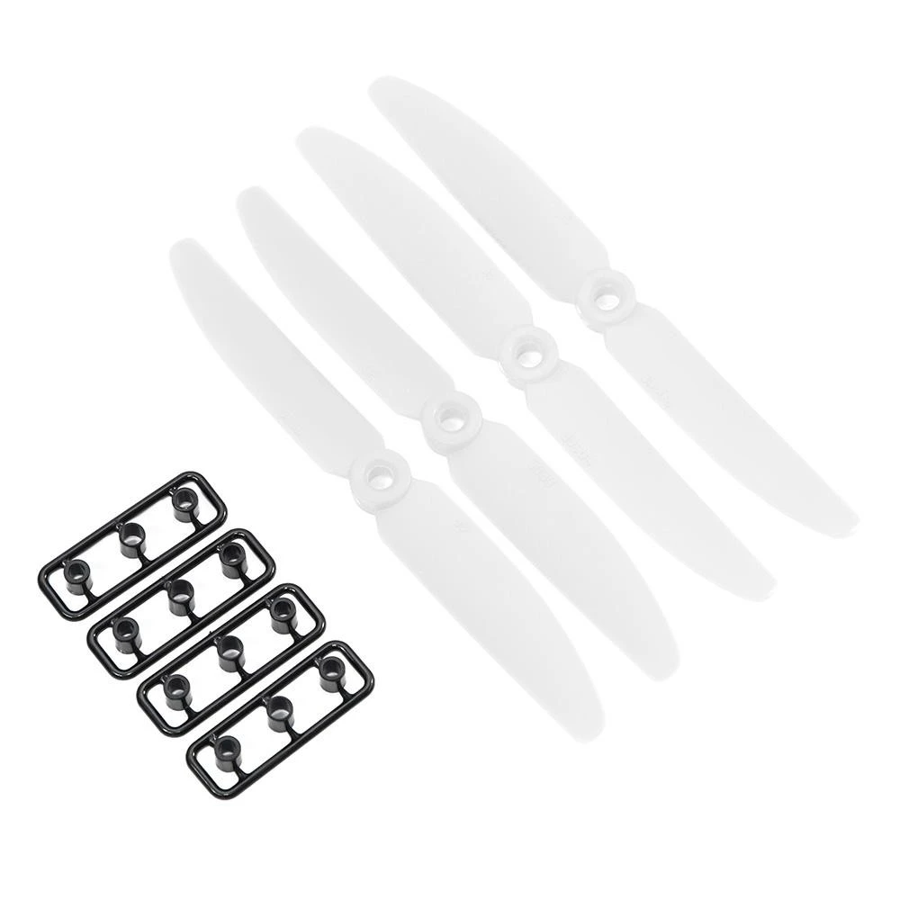 The 5×3 Gemfan propellers are supplied as a set of 4 propellers, 2 x CW and 2 x CCW with a 5mm center hub. The Gemfan 5×3 props are supplied with a set of plastic reducers for motor shaft sizes of 2.9mm, 3.1mm, 4mm. These are a good cheap set of props for mini FPV multi-rotors.