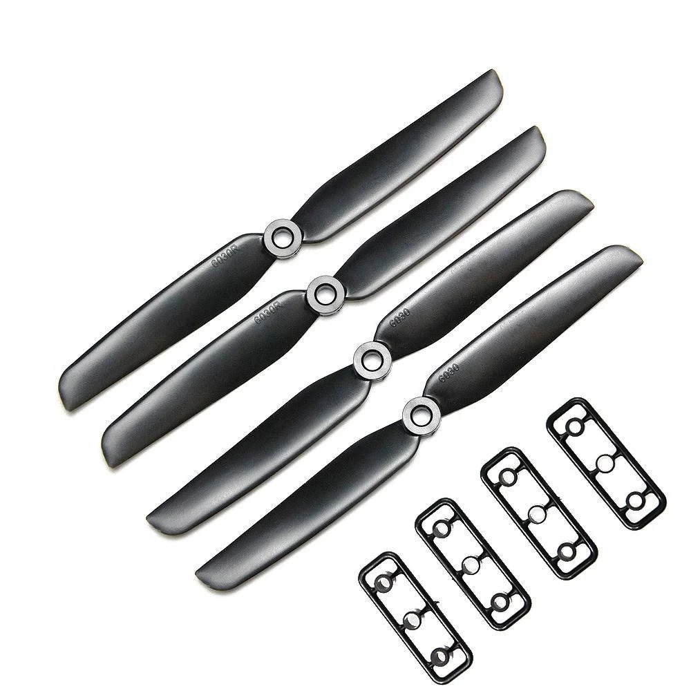 The 6×3 Gemfan propellers are supplied as a set of 4 propellers, 2 x CW and 2 x CCW with a 5mm center hub. The Gemfan 6×3 props are supplied with a set of plastic reducers for motor shaft sizes of 2.9mm, 3.1mm, 4mm. These are a good cheap set of props for mini FPV multi-rotors.