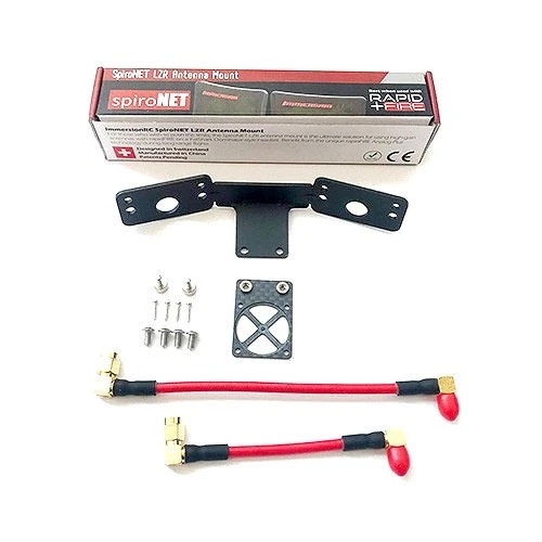 The ImmersionRC LZR Long Range Array Mounting Kit allows yuou to mounting two of the ImmersionRC SpiroNet LZR patch antennas for the ultimate long-range 5.8GHz flying. Using the custom cables and mounting kit adding your antennas to your rapidFIRE receiver and fly further and with more confidence than ever before on 5.8.Â