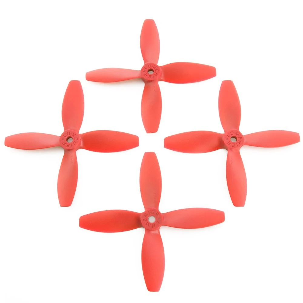 The Lumenier 4x4x4 red propellers have been designed for the mini FPV racing drones and freestyle pilots, providing optimal thrust, efficiency and top end speed. The Lumenier propellers were designed from the ground up, the airfoils of the Lumenier props have been designed with key consideration given to flight speed, blade RPM and other factors to optimise the profile for the best possible flights. The Lumenier propellers have been designed using a proprietary algorithm to design a unique airfoil for the 4x4x4 blade variation rather than using the same blade design for 2 blade, 3 blade and 4 blade propellers, which could mean the difference between a race win or loss. The Lumenier red propellers are supplied as a set of 2 CW and 2 CCW propellers.