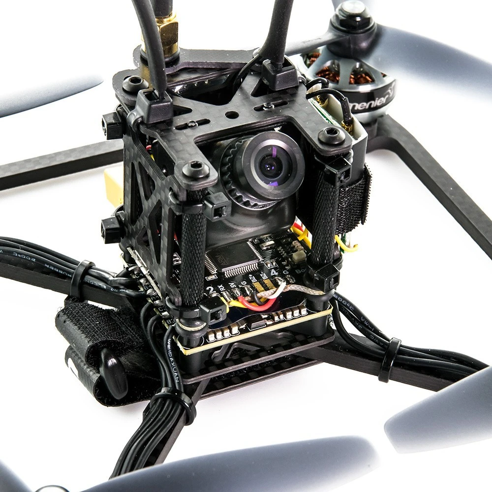 The Lumenier QAV-ULX has been designed to have a motor to motor distance of just 185mm which provides optimal manoeuvrability whilst still accommodating the very popular 5″ propeller. For Those who wish to use 4″ propellers 4″ arms are also available which further reduce the wheelbase. As well as this each kit includes spare arms and frame plates in order to allow for replacement of those parts after a heavy impact or crash.